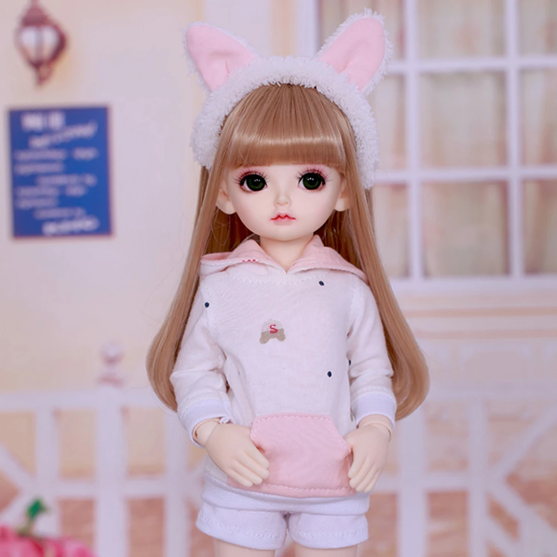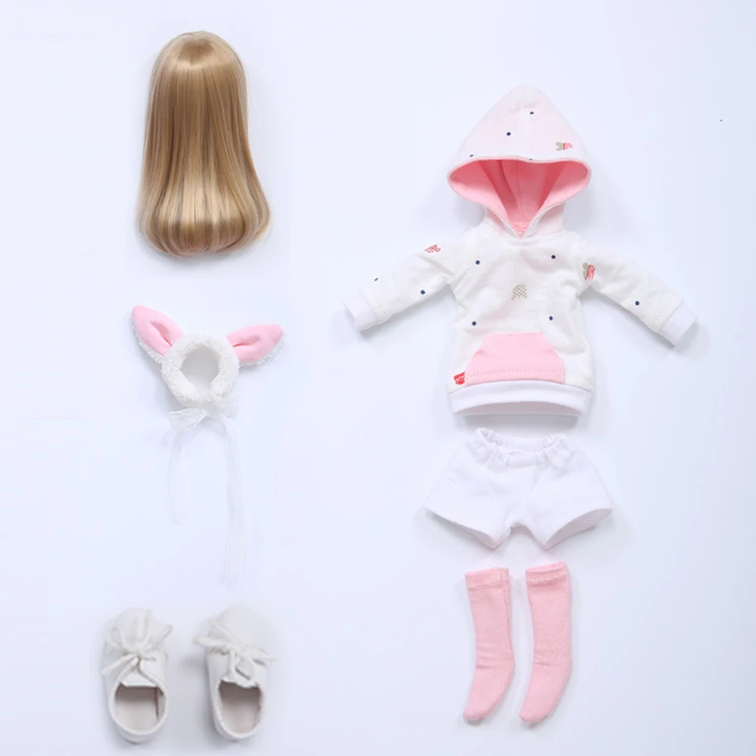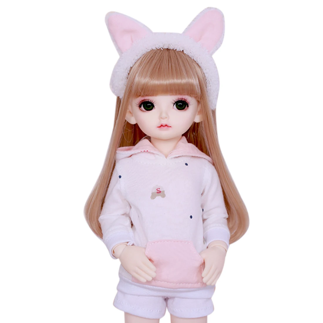 1/6 BJD Doll Bunny Ears Casual Pink Long Sleeve Sports Sportswear Girl Rita Set with Wig Shoes Brow