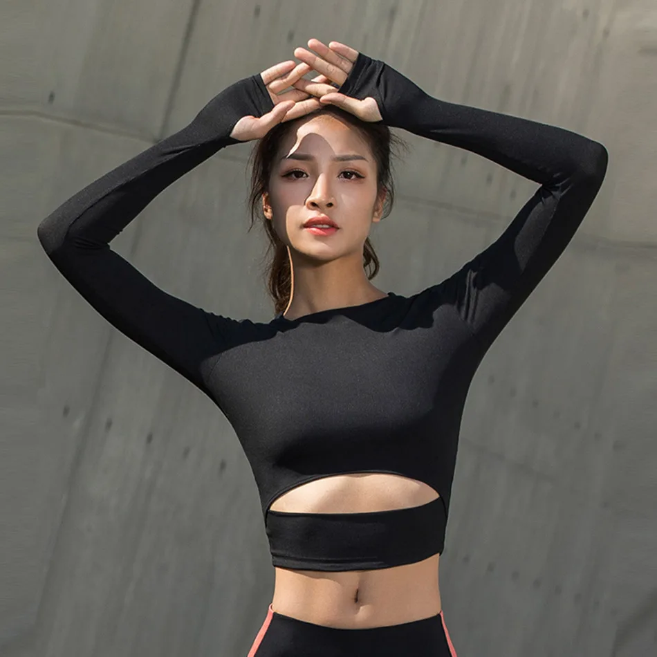 Le NaKai soft knitted rib yoga shirts for women off-shoulder shirts crop top long sleeves skinny fi