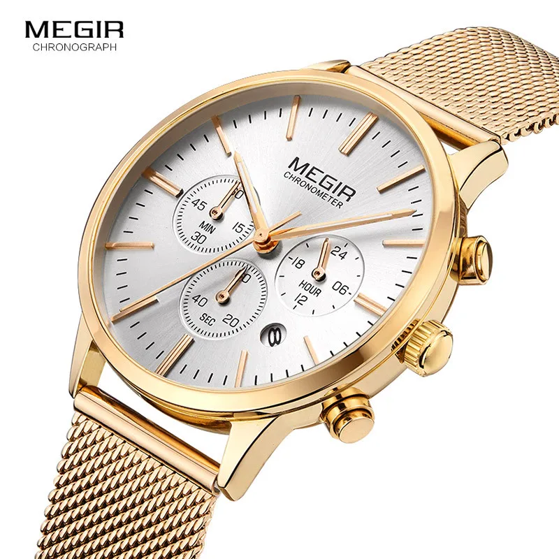 MEGIR Mens Watches Top Brand Luxury Women Sports Watch Clock Ladies Stainless Steel Chronographs Mi
