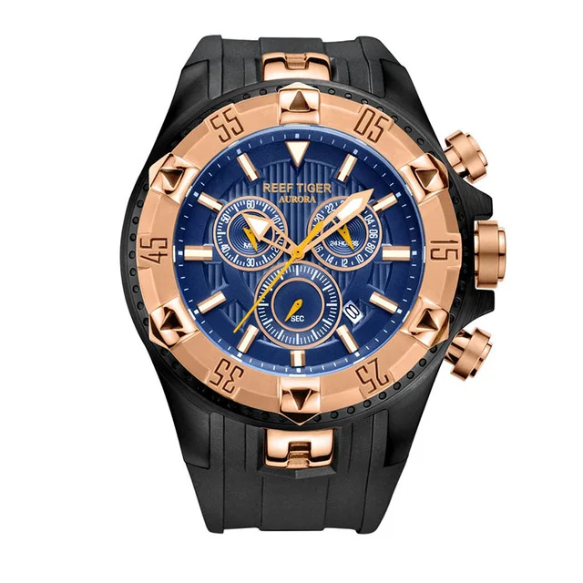 Reef Tiger Aurora Serier RGA303 Men Sports Watches Quartz Wrist Watch with Chronograph and Date Big