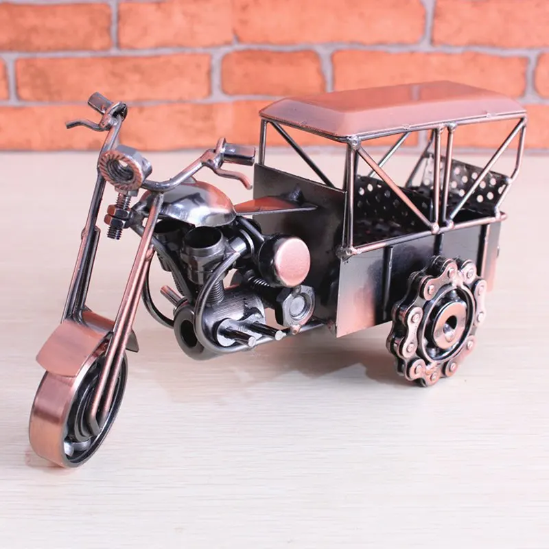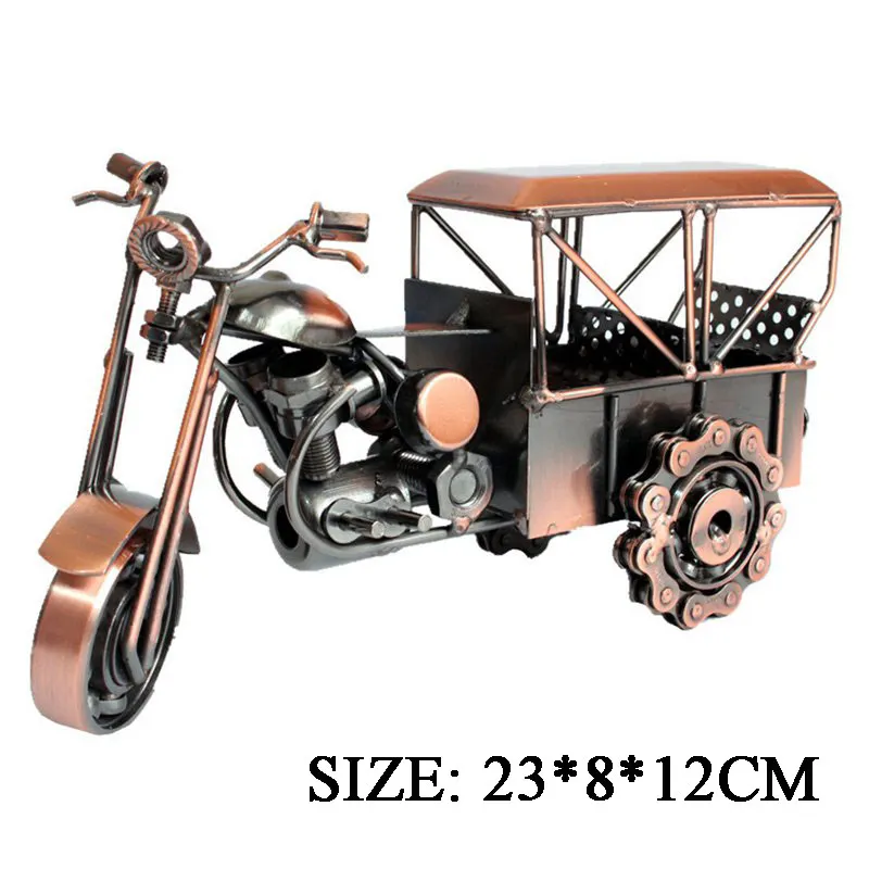 ORIGINAL Retro Three-wheeled Motorcycle Metal Sculpture Vintage Tuk-tuk Iron Art Home Decor Birthday & Festi