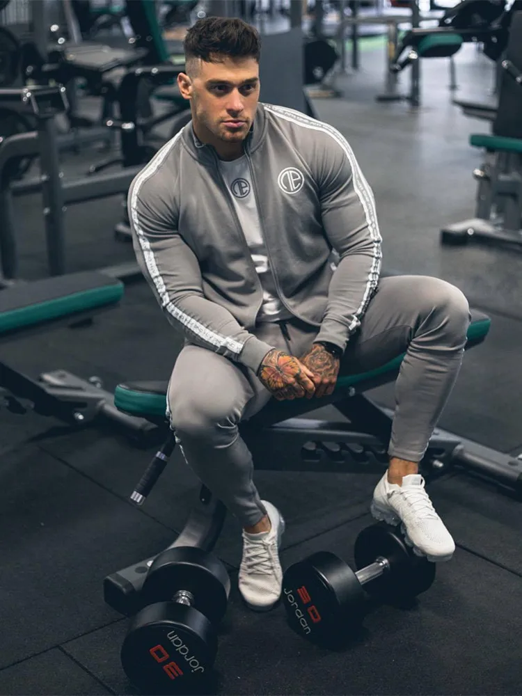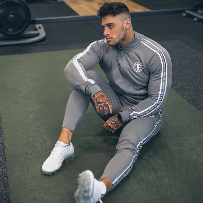 2019 Sport Suit Men Bodybuilding Jacket Pants Sports Suits Basketball Tights Clothes Gym Fitness Ru