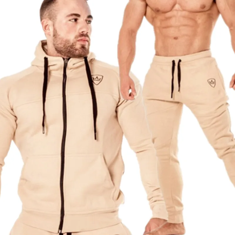 ORIGINAL 2 pieces Sping Running Set Long Sleeve Stand Collar Sweatshirt Sports Set Gym Clothes Men Sport Sui