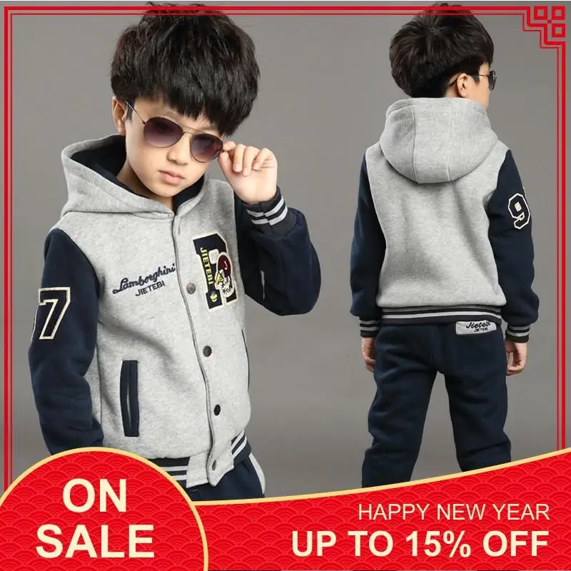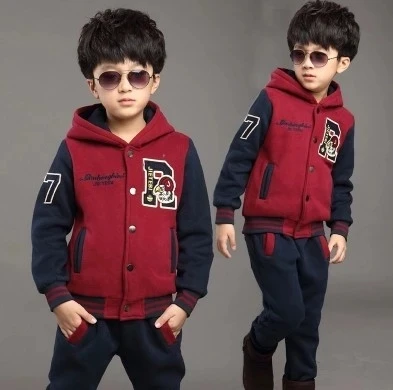 Foreign Trade 2019 Fall Winter Boys Baseball Uniform 2 Pcs Set Children Thickening Sweater Suit Kid